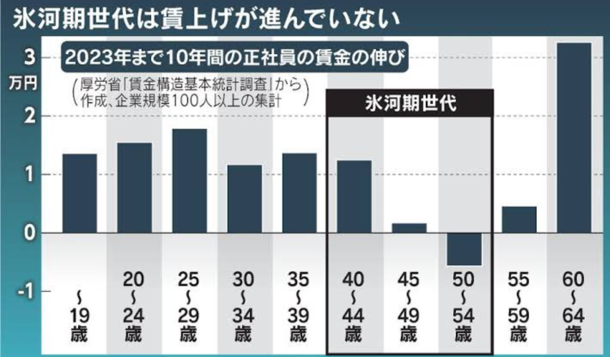 これを40-50代世代のデータとみるとか、たまたま氷河期だったからとみるかです。